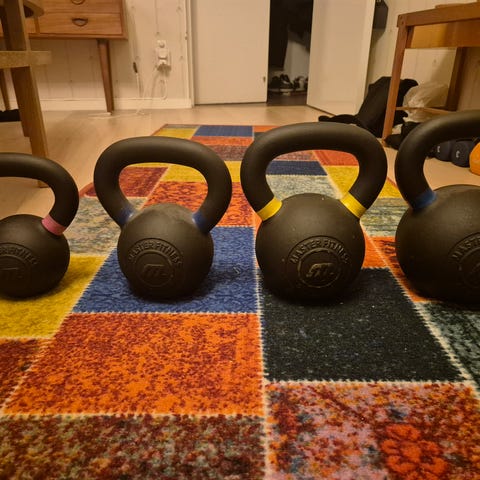Två rosa kettlebells 8 kg. Som nya. Döttrarna tränat boxning på Pink Gloves. Perfekt julklapp till starkare döttrar 💖🤗💪 600 för båda.