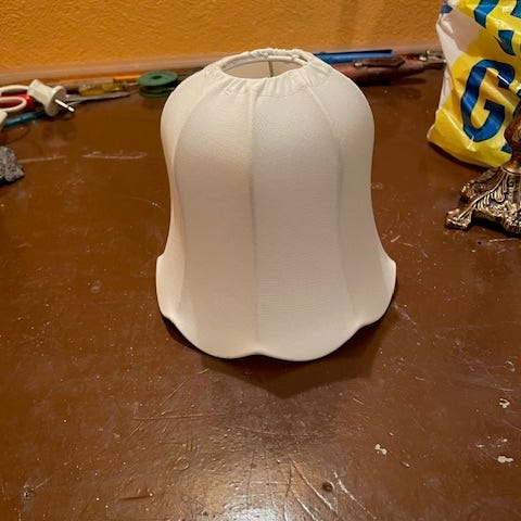 Med röd skärm. Keramikfot