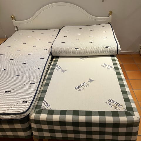 En hästens sheraton mjuk väl använd men extremt skön att sova på å till billigt pris. Har två behöver inte bägge. På tredje bilden är en 1200x2000 säng om jag har liggandes vet ej vad det är för modell kan köpas med för 500kr tung. Kan tänka mig att sälja bägge hästens för 6000. Så sparar jag den vita