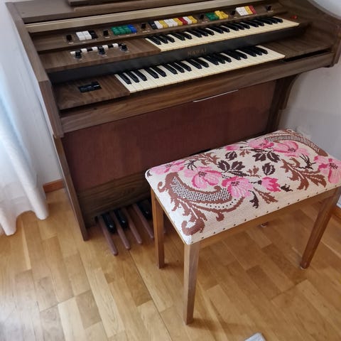 Äldre elorgel med pall.