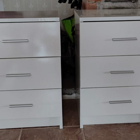 Sängborden är gjorda i metall och består av två glas skivor per sängbord som är löstagbara.