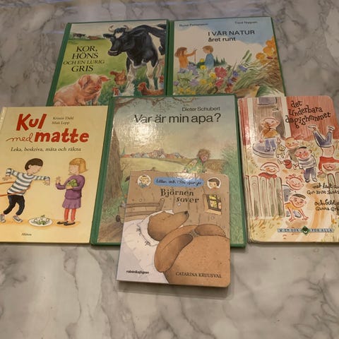 Säljer ett paket med 8 engelska böcker fyllda med roliga, charmiga och klassiska berättelser. Böckerna är i fint skick och perfekta för högläsning eller för barn som börjar läsa själva. Passar ca 3–8 år.