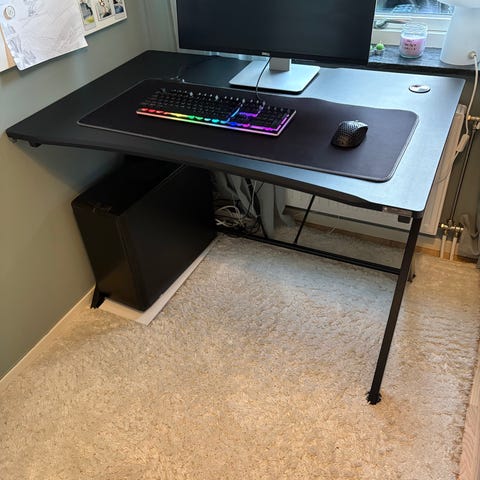 Skrivbord för gaming, svart. Mått: b140/185 x d74 x h146 cm.
