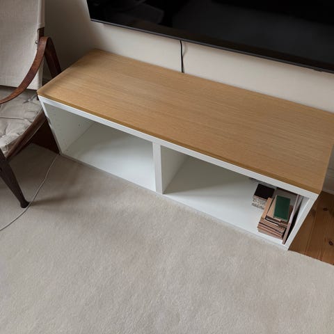 TV-bänk i jättefint skick. Har använts sparsamt. Fina detaljer. Justerbara hyllor, kan fästas i väggen. Just nu har den kantskydd som givetvis tas bort vid försäljning. Finns att hämta i Örnsberg, Stockholm.