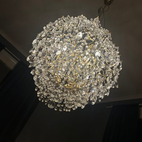 Säljer en exklusiv och modern kristalltaklampa i mycket gott skick – den är knappt använd och ser ut som ny. Lampan har en stilren design med flera ringar av gnistrande kristaller som ger ett lyxigt och effektfullt ljus i rummet. Passar perfekt i vardagsrummet.