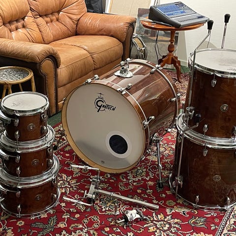 Gretsch Catalina Maple virveltrumma på 14 tum i walnut glaze träfinish. Slagskinnet är nyligen bytt till Remo coated ambassador (finns två till nya skinn (Evans) + originalskinnet). Säljes på grund av ekonomin. Knappt använd.