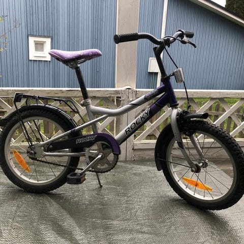 Trek barncykel med 16 tum hjulstorlek med fot broms i grön färg. Cykeln har en korg fram skärmar och en bakre pakethållare. Utrustad med reflexer och en avtagbar varning flagga för ökad synlighet.med en grön justerbar säkerhet hjälm , lös lås två nycklar , ring klockan , finns i Västerås .