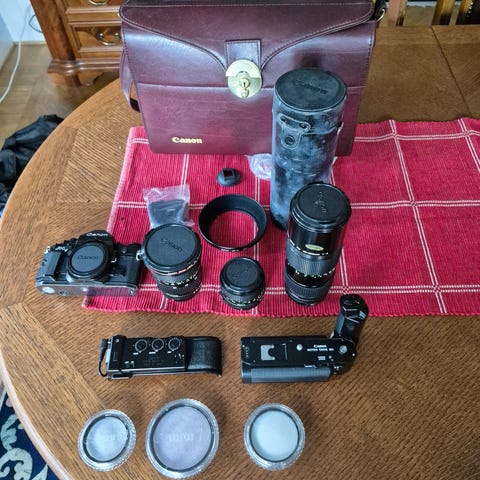 Säljer en Canon AE-1 Program i det klassiska och eftertraktade svarta utförandet, komplett med ett 35–70 mm zoomobjektiv. En perfekt analog systemkamera för både nybörjare och mer erfarna fotografer.