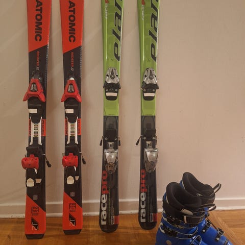 Skidor för barn, 112 cm. Använda av flera barn, men fungerar, har fina underlag och kanter. K2 Indy 112 cm