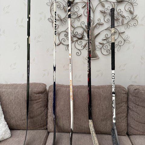 Ishockeyklubbor med en längd på cirka 150-170 cm Klubborna är avsedda för användning inom ishockey och har ett traditionellt svart och rött färgschema. Hockeyklubborna är av märkena Bauer Nexus 8000 och Ccm (Left handed)