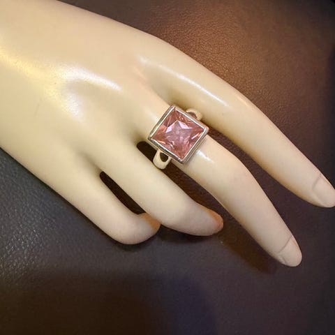 Elegant ring i 925 silver med en vacker oval smaragd. Ringen är stämplad med 925. Troligen tillverkad av Michelle Albalas Makers Mark. Strl 20