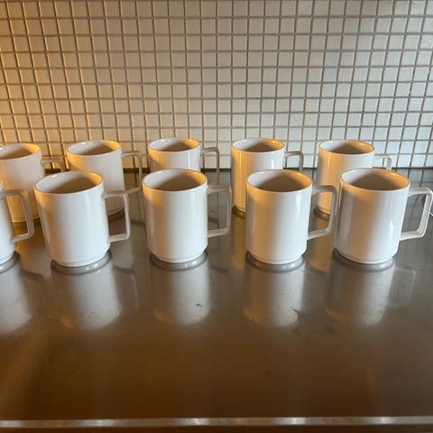 9 fina vita koppar med fat plus tre extra kaffefat.