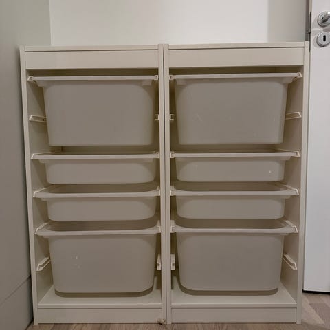 IKEA barnmöbler förvaringslåda i vitt. Lådan är utformad för att förvara leksaker eller andra barnrelaterade föremål. En enkel och funktionell design i vitt.