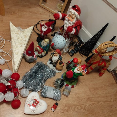 Ett sortiment av julgranspynt i olika material och utföranden. Inkluderar bland annat keramik, trä och textil. Perfekt för att dekorera julgranen eller skapa en festlig julstämning.