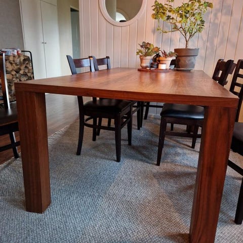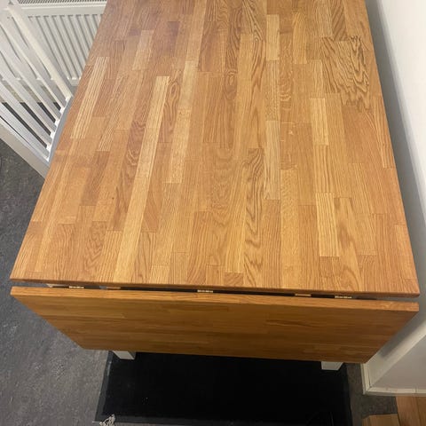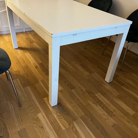 Inköpt för tre år sedan. Små skavanker finns i bordsskivan, men inget som förhindrar funktionen.