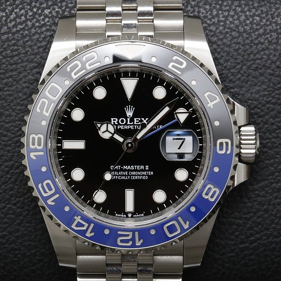 Den matta Visa-blå kupade tavlan kombineras med gunmetal-infattade index, tydlig vit minutmarkering och diskret två rads text vid kl. 6. Boetten är tillverkad i mikroblästrad monoblock-keramik och mäter 41 mm i diameter, ca 50 mm lug-to-lug och 14,4 mm i tjocklek. Trots måtten bär klockan mindre än förväntat. Extra kupat safirglas och keramisk bezel med solslipad finish samt graverad skala i låg kontrast. Polerade fasningar på bandhornen.