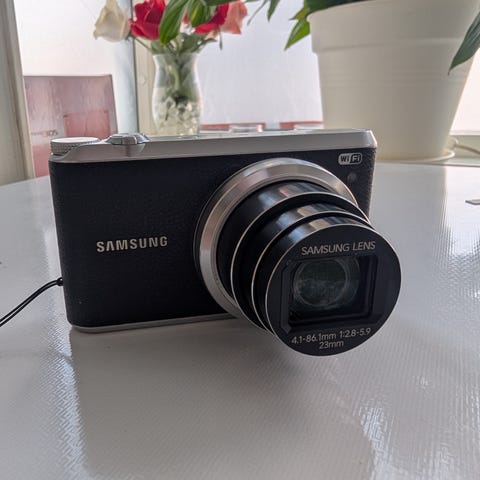 Säljer en Samsung WB350F digitalkamera med tillbehör, två nya batterier och en ny laddare, en ny datorkabel, ett begagnat fodral och ett begagnat minneskort. Kameran fungerar som den ska.