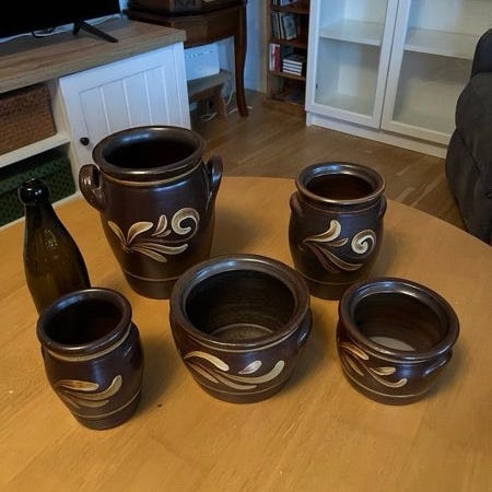 Otagiri kanna, handmålad och signerad * Mary Ann Baker" och etikettmärkt.