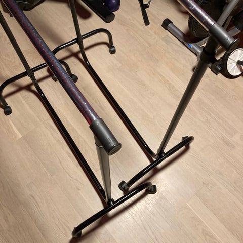Suspender är svarta hängslen. Den har justerbara remmar och metallklämmor för fäste vid byxor.