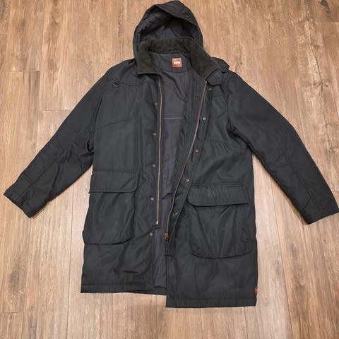 Jackan har flera fickor framtill och en dragkedja samt knappar som stängning.