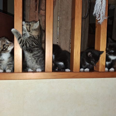 Katterna är alla mysiga, sociala och trevliga. Mamman omhändertagande och lugn, ungarna söta och lekfulla. De går alla på lådan problemfritt.
