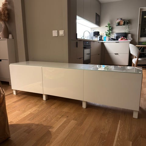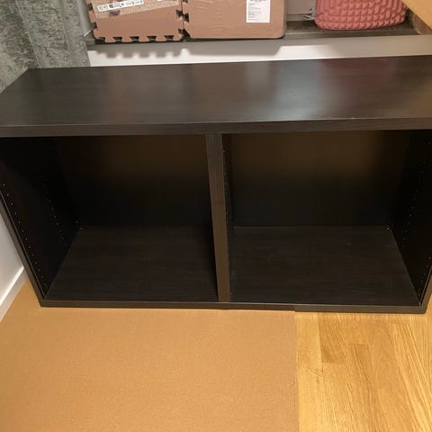 Gott om förvaring i två lådor och en skåp del (mitten). Vet inte om det varit hyllor men vi har tagit bort dem för bäst utrymme av spelkonsoler och förstärkare.