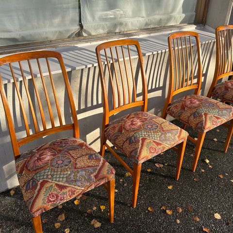 10 fina matstolar i Leksandsmodell med Lösstoppade sitsar