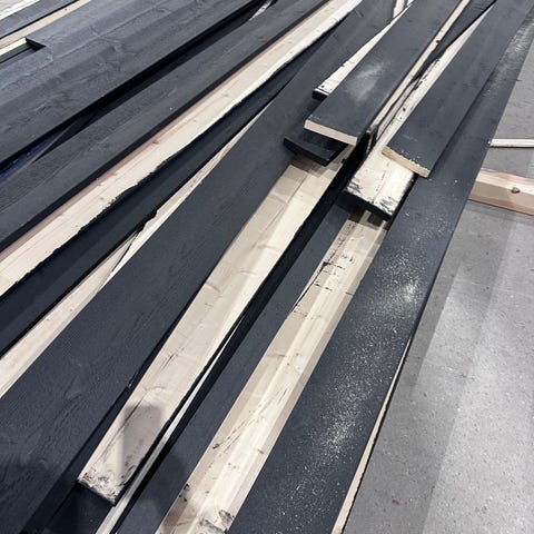 Ett obrutet paket med 6 plankor och ett öppnat paket med 5 plankor samt ett gäng kapade plankor som följer med på köpet.