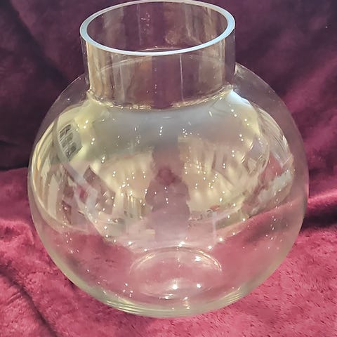 Dekorativ glasvas i klar glas med rund botten och smal öppning.