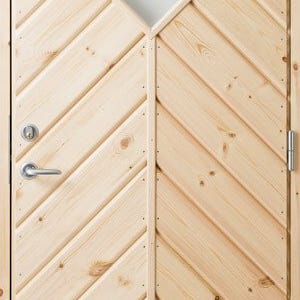 Dörrarna är tillverkade av Furuhälls snickeri med utvändig panel i furu. Karm 42x105 mm.