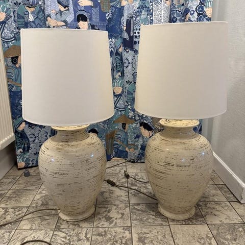 Vintage Le Dauphin-lampa - Fransk keramik & mässing