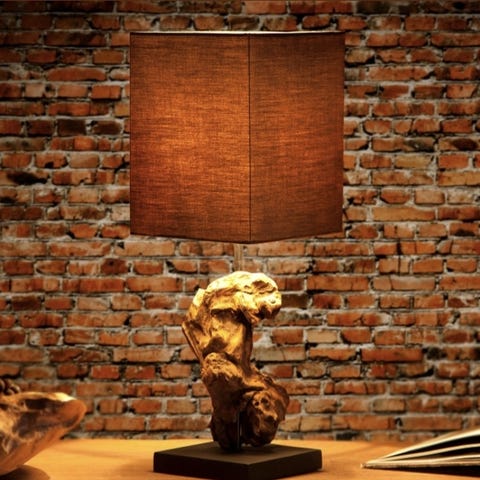 Lampan är ett handgjort mästerverk i en slående design tack vare den speciella designen i naturligt trä. Varje lampa är handgjord och skapar en speciell atmosfär med stark personlighet. Linneskärmen skapar ett mjukt ljus och de ljusa färgerna harmoniserar med träramens varma nyanser. (Nypris 790kr)