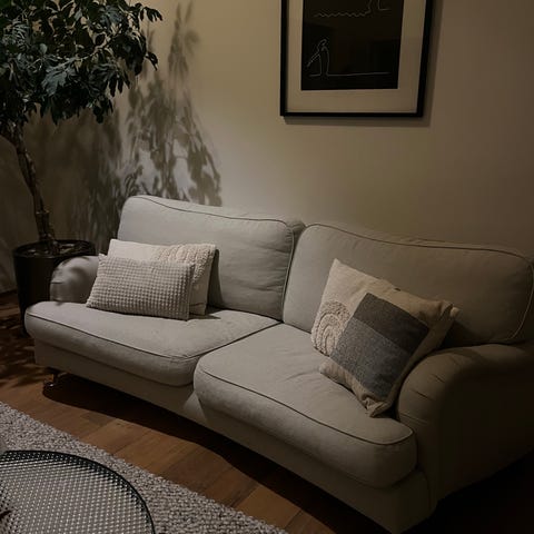Säljer komplett set: Howard 2-sits soffa och matchande fåtölj från Mio, Limited Edition, i ljus beige sammet, samt soffbord. Mycket fint skick. Barn- och djurfritt hem.