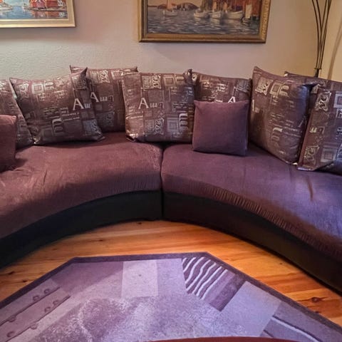 Säljer en rymlig och bekväm hörnsoffa med rundad form. Soffan är ca 3 meter bred och 1,5 meter djup och erbjuder gott om sittplatser – perfekt för vardagsrum, TV-hörna eller sociala ytor.