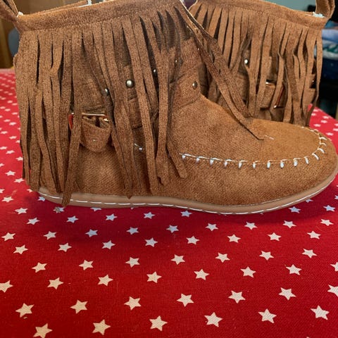 Damskor med fransar. Nya aldrig använda. Är i storlek 39. Är dragskedja på sidan. Kan avhämtas.