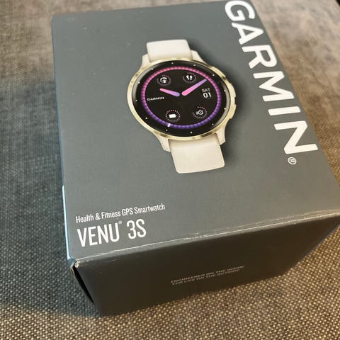 Garmin Venu 2 Plus smartklocka med svart armband. Klockan fungerar bra förrutom höjdmätaren som anger för höga siffror. Läderarmband ingår ej.
