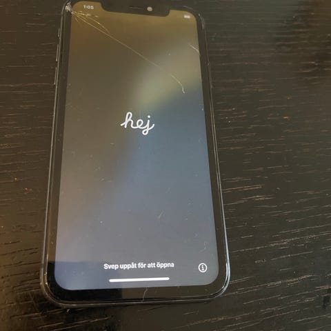 Apple iPhone 11 skärmglas med sprickor och skador. Passar för reparation eller reservdelar.