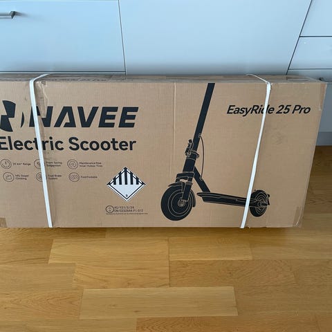 Navee Easyride Pro E25-S elscooter är idealisk för att utforska staden med sin hopfällbara design, 20 km/h topphastighet, 25 km räckvidd, 14% backkapacitet och 90 kg lastkapacitet. Passar alla vuxna.