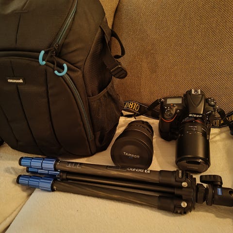 Nikon D810 är en professionell fullformats-DSLR känd för sin höga upplösning (36,3 MP), utmärkt bildkvalitet och flexibilitet, med ISO 64-12800 (utökningsbart 32-51200), en tystare slutare (kolfiber/kevlar), snabbare EXPEED 4-processor och förbättrad autofokus (liknande D4S), samt Full HD-video (1080p/60fps). Den har ett robust vädertätat magnesiumhus, dubbla minneskortplatser (CF+SD) och är idealisk för landskap, studio och krävande fotografering