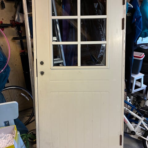Gullringshus ytterdörr med glasruta i vitt utförande. 10x21