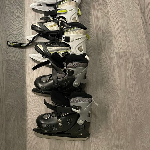 Barnskridskor av olika märken och modeller i flera färger och storlekar. Passar för olika typer av skridskoåkning och är anpassade för barn.