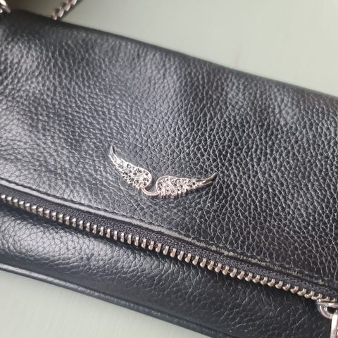 Snygg och mångsidig väska från Zadig & Voltaire, i 100% äkta läder. Klassisk svart modell med märkets ikoniska graverade vingar framtill. Kan bäras både i handen, på axeln eller crossbody – perfekt för både vardag och fest! (webbsidans text).