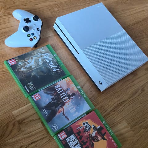 Xbox One S i gott skick som fungerar felfritt. 500 GB utrymme.