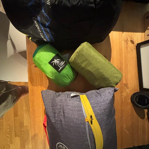 Ticket to the Moon Compact Hammock i röd färg, designad för enkel transport och användning. Hammocken är kompakt och lätt att packa ner, vilket gör den lämplig för utomhusaktiviteter och resor.