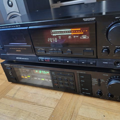 Denon kassettbandspelare med svart färg och standardstorlek. Enheten är avsedd för uppspelning och inspelning av kassettband. Hämtas!