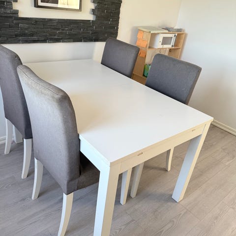 IKEA matbord Ingatorp. 4-sitsbord som kan förlängas till 6-sitsbord med medföljande iläggsskiva.