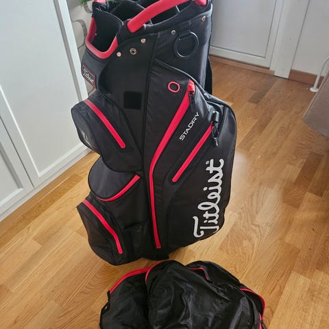 Vagn MaxFli i bra skick, Titleist bag fint skick, klubbor fynd