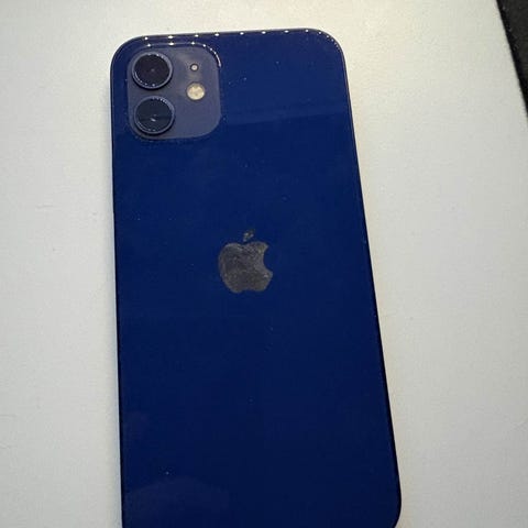 Apple iPhone 12 Pro smartphone med 128 GB lagringsutrymme. Enheten har en blå färg.