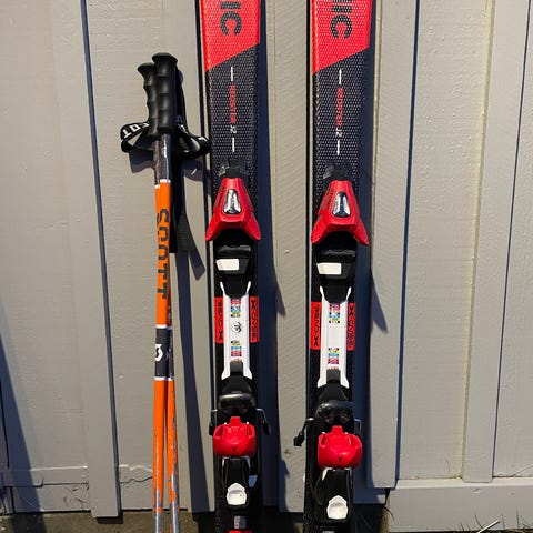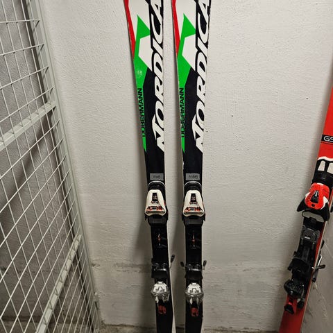 Säljer ett par Nordica Dobermann SL i längd 136 cm – klassiska slalomskidor för alpin träning och tävling.