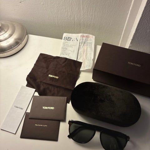 Tom Ford solglasögon för man. Glasögonen har en klassisk design med mörka linser och metallram. Otroligt bra kvalitet och passform!
